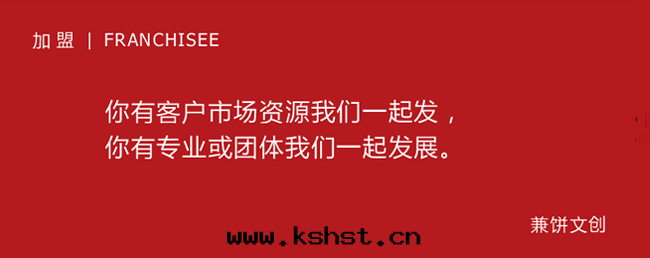 你有(yǒu)客戶市(shì)场(chǎng)資源我(wǒ)们(men)一(yī)起(qǐ)發(fà),你有(yǒu)專业或(huò)团(tuán)體(tǐ)我(wǒ)们(men)一(yī)起(qǐ)發(fà)展(zhǎn)。兼餅文(wén)創