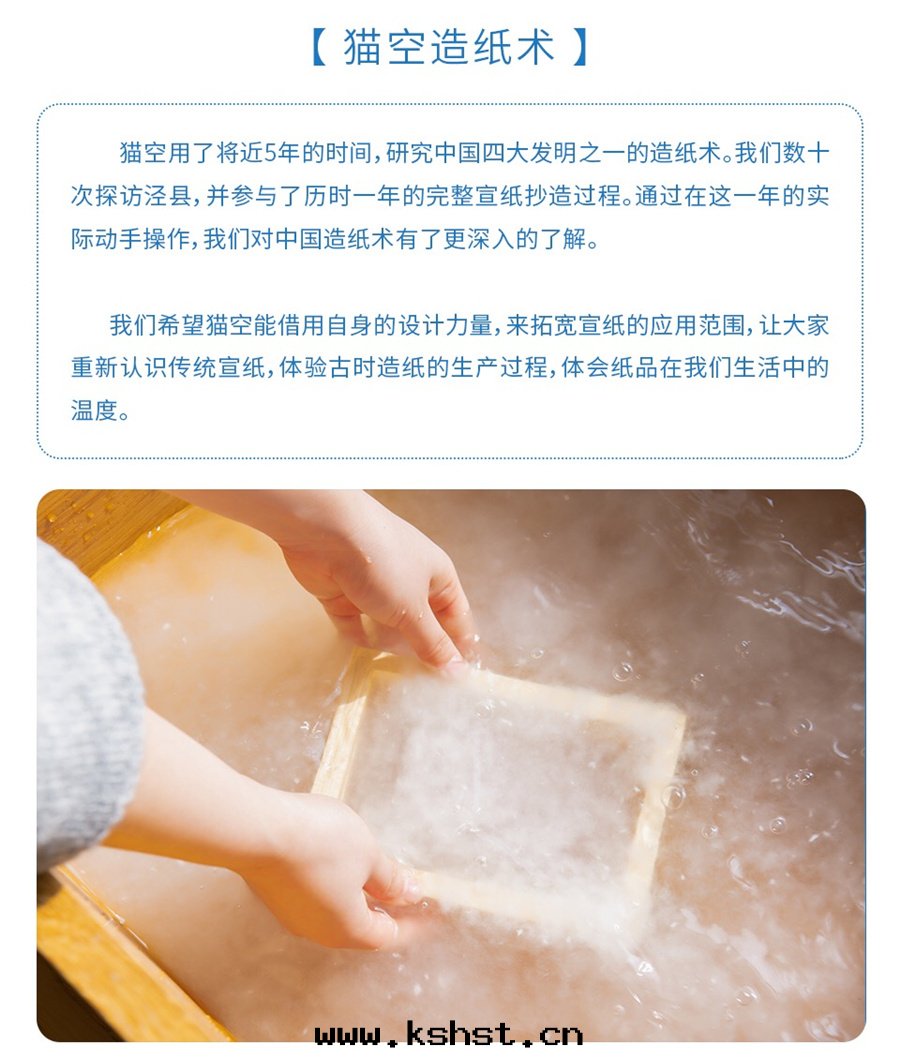 貓空(kōng)的(de)造紙(zhǐ)術(shù)DIY套(tào)裝(zhuāng),通(tòng)过(guò)簡化(huà)和(hé)創新傳統繁複的(de)技術(shù),为(wèi)人(rén)们(men)带(dài)来(lái)全(quán)新有趣的(de)造紙(zhǐ)體(tǐ)验(yàn)。